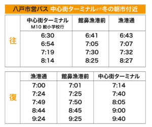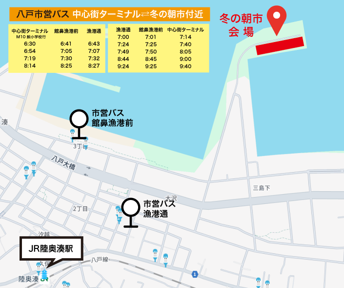 冬の朝市では、八戸市営・日曜朝市循環バス〈いさば号〉運行は休止となります